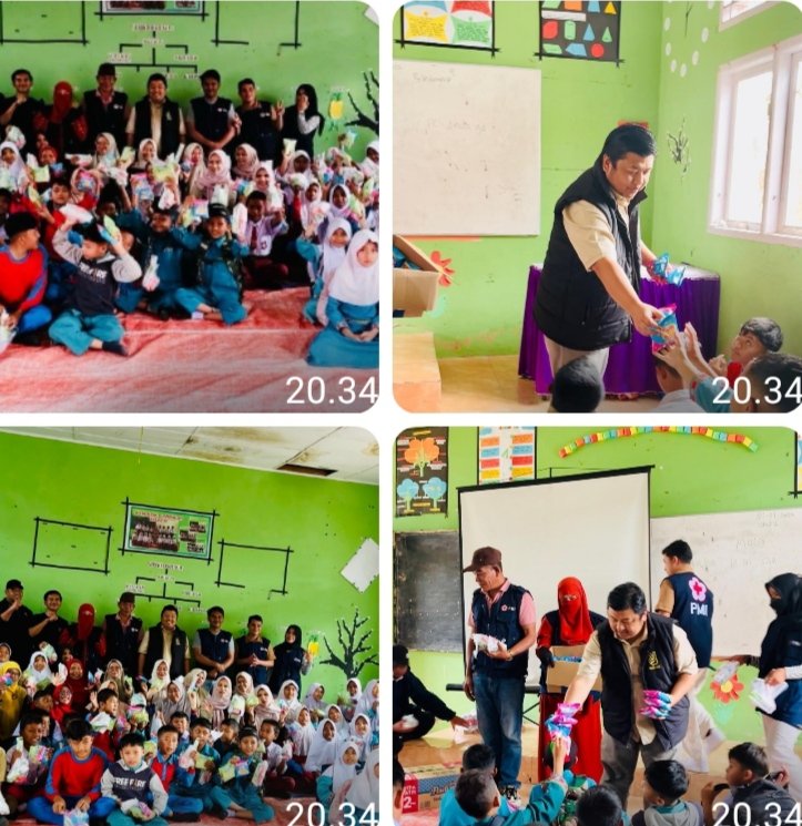 Dalam kegiatan tersebut, PMI juga membagikan perlengkapan kebersihan diri kepada para siswa.
