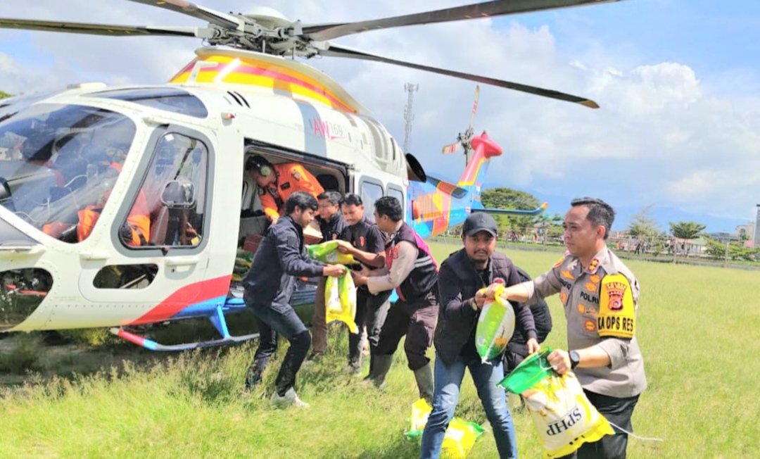 Takengon | Investigator. News- Bantuan kemanusiaan dari Kapolri untuk masyarakat Kabupaten Aceh Tengah tiba melalui Helikopter Polisi AW 169 yang mendarat di Lapangan Musara Alun, Desa Blang Kolak II, Kecamatan Bebesen, Sabtu siang (6/12/2025) pukul 12.00 WIB.