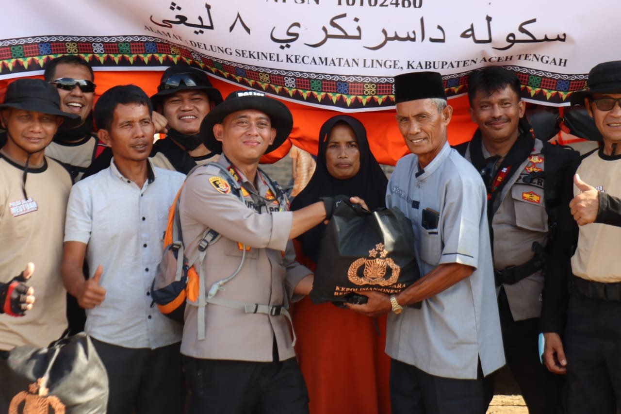 Kegiatan kemanusiaan tersebut turut dihadiri para pejabat utama, personel Polres Aceh Tengah, Brimob Polda Aceh, dan komunitas Trail Aceh Tengah Tragong.