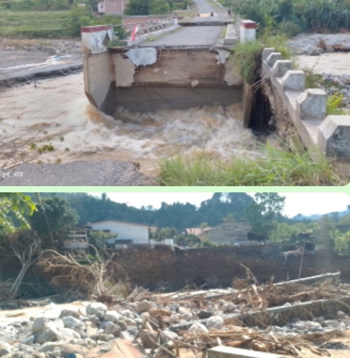 Foto : Salah satu Badan Jalan yang Ambruk berikut dengan jembatannya di Kampung Paya Bike Kec. Silihnara