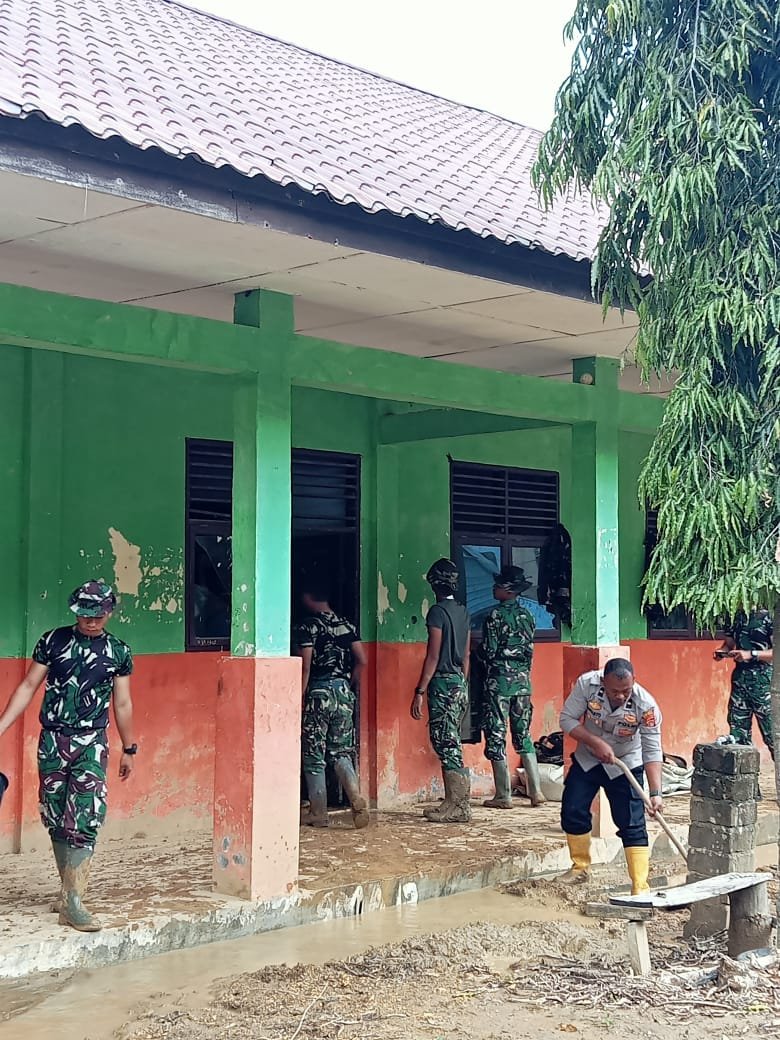 TNI–Polri Turun Tangan, Sekolah dan Puskesmas Rusip Antara Bangkit dari Lumpur Bencana
